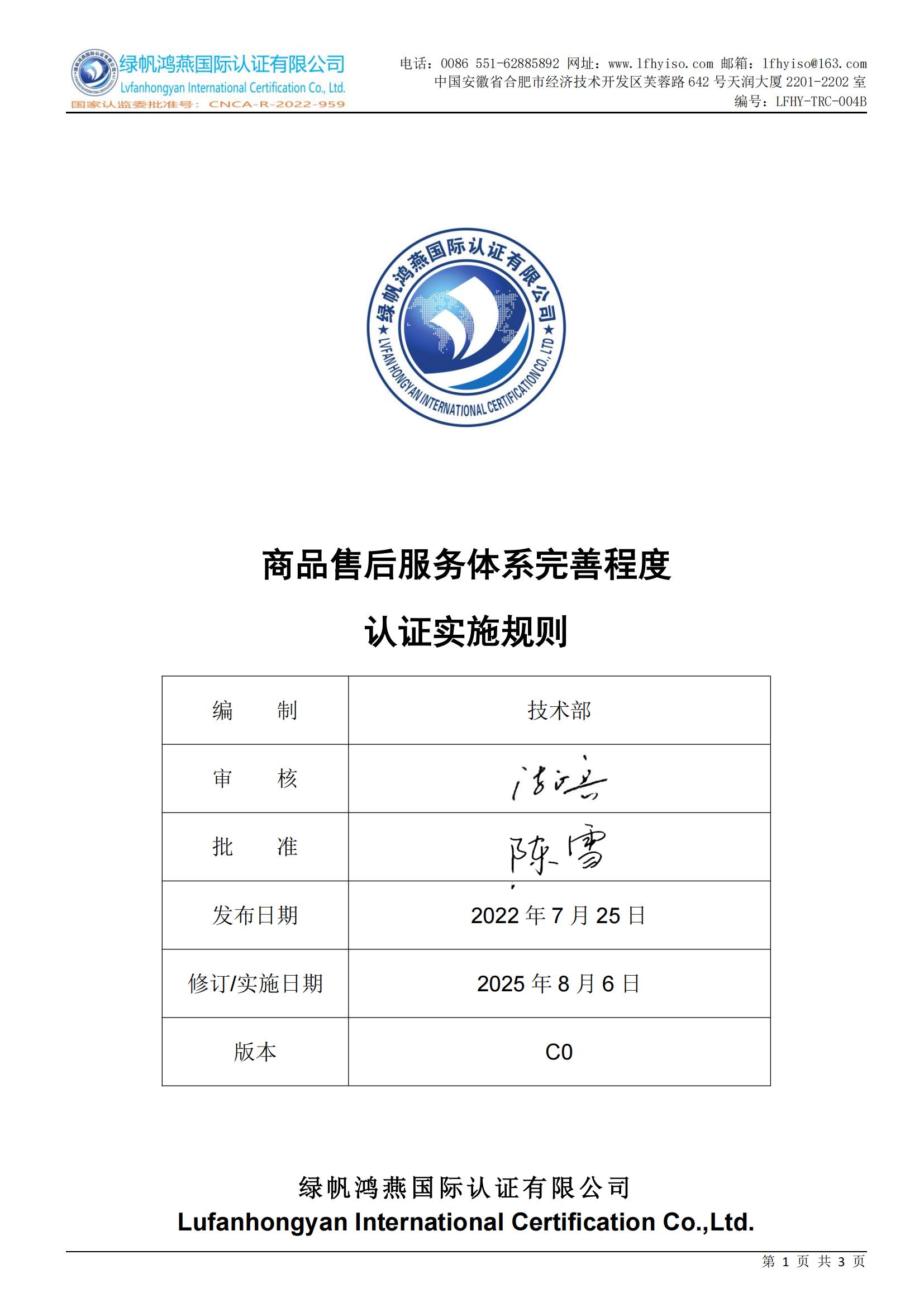 LFHY-TRC-004B《商品售后服務(wù)體系完善程度認(rèn)證實(shí)施規(guī)則》【清稿】